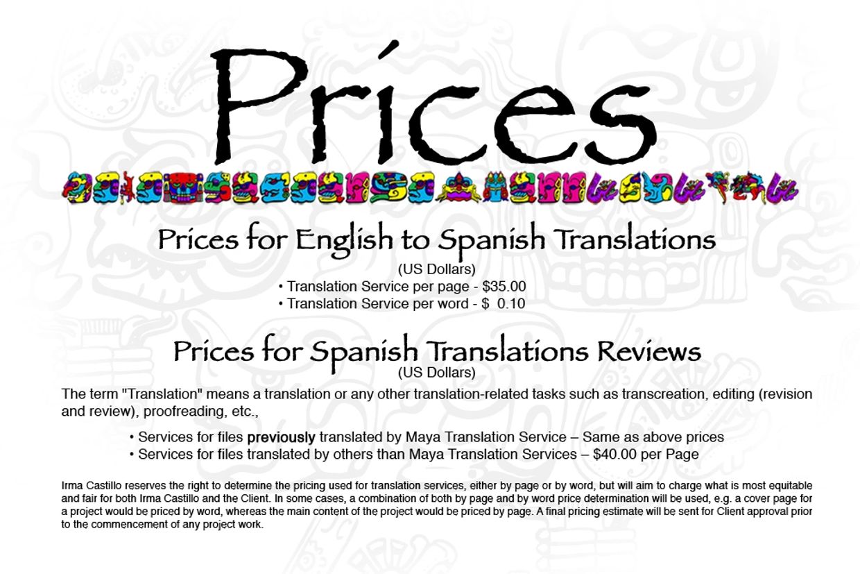 I worked with Mrs. Castillo for several years, during which time she was responsible for translating many documents, some involving dozens of pages, from English to Spanish. In every instance her work was thorough, professional and met every deadline that was requested of her. In my current position I continue to have documentation needs where the proper translation of information from English to Spanish is of the utmost importance, and there is no one I would rather trust for translations services than Mrs. Castillo. I wholeheartedly recommend Maya Translation Services for your English to Spanish translation needs